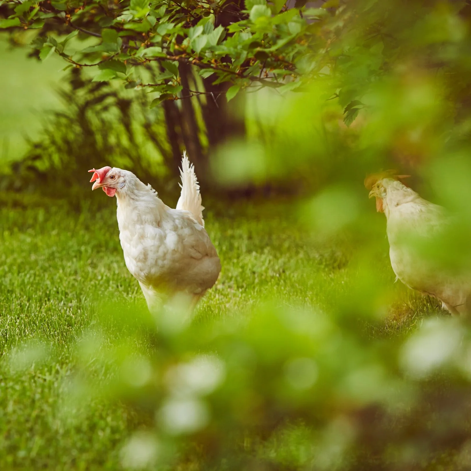 Dei aller lykkelegaste av hønene våre trippar fritt rundt på tunet – og tek gjerne i mot ein brødskalk eller nokre frø om junior har nokon å avsjå etter frukosten.